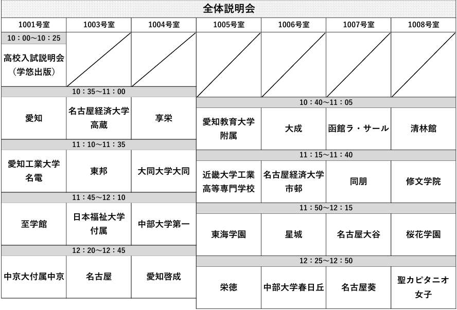 スクール形式により参加校入試担当の先生より進学実績・学校行事・部活動の特徴・入試に関するアドバイスなどお話いただく予定です。